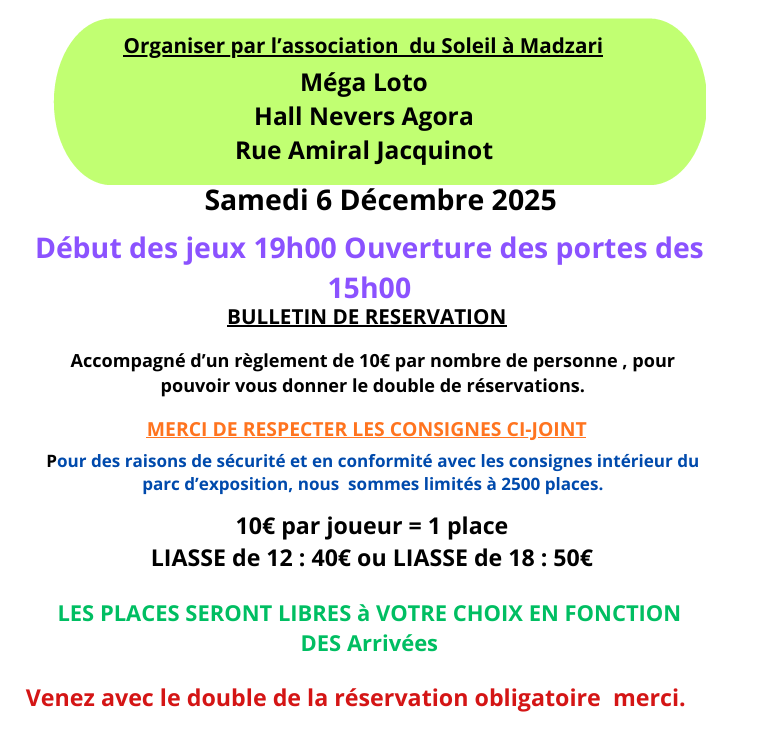 Bienvenue au Méga Loto de Noël du Soleil A Madzari